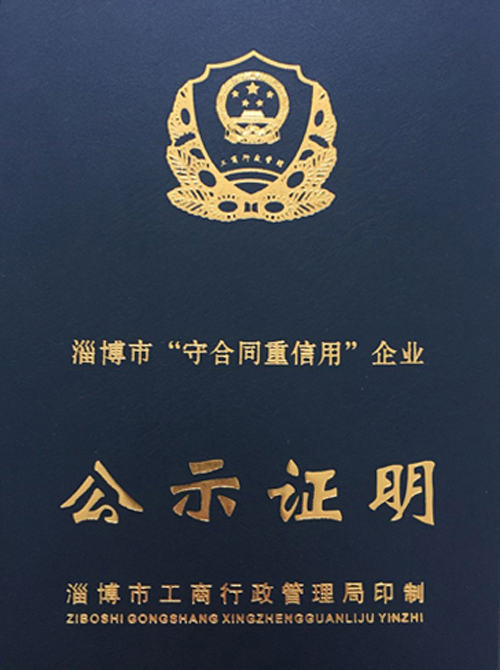 热烈庆祝淄博华烁机械有限公司获得淄博市工商行政管理局“守合同重信用”企业公示资格!!!
